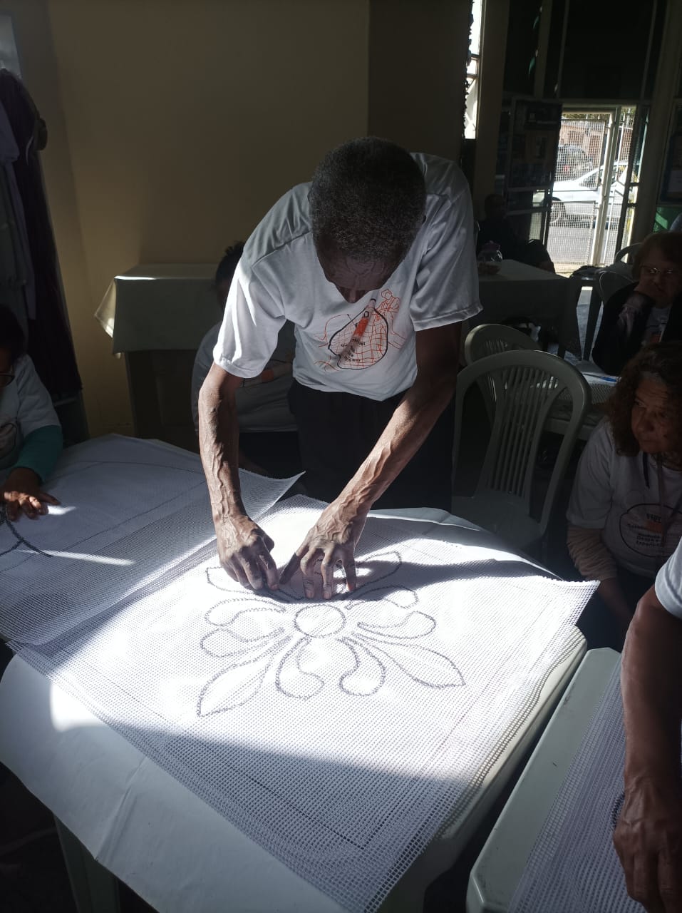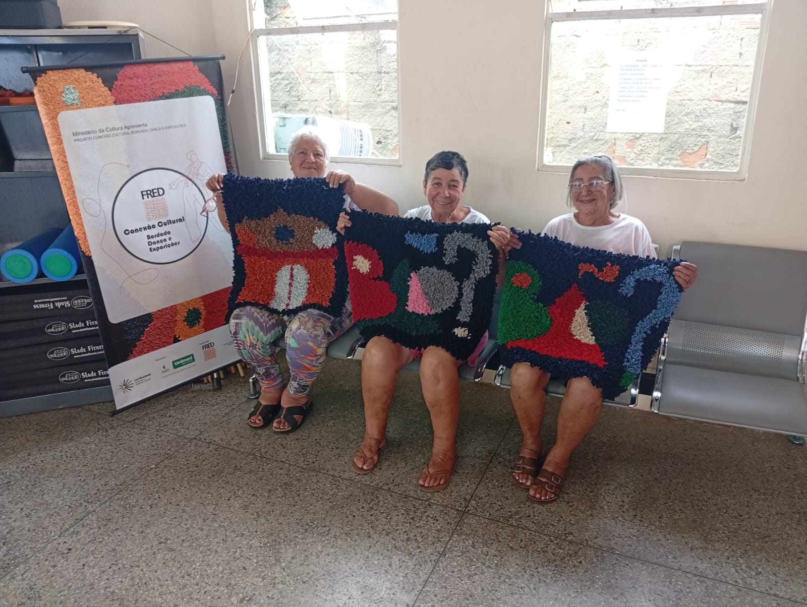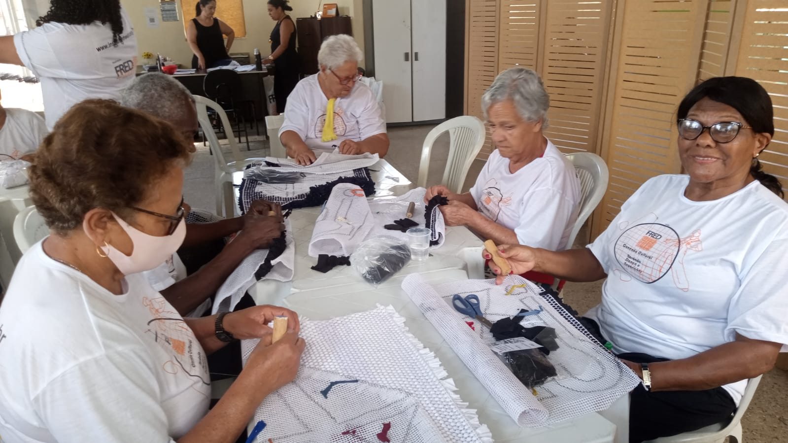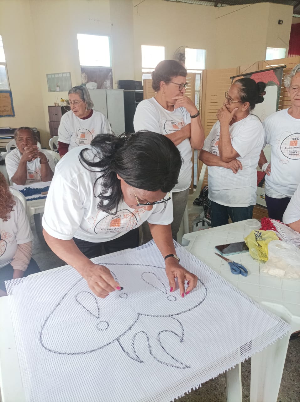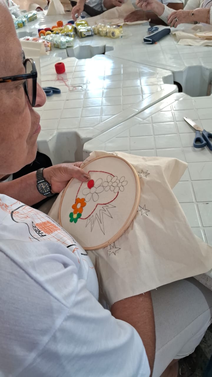 Alunos da oficina aprendendo artesanato de tapeçaria e bordado (parceria projeto FRED) 07/2025