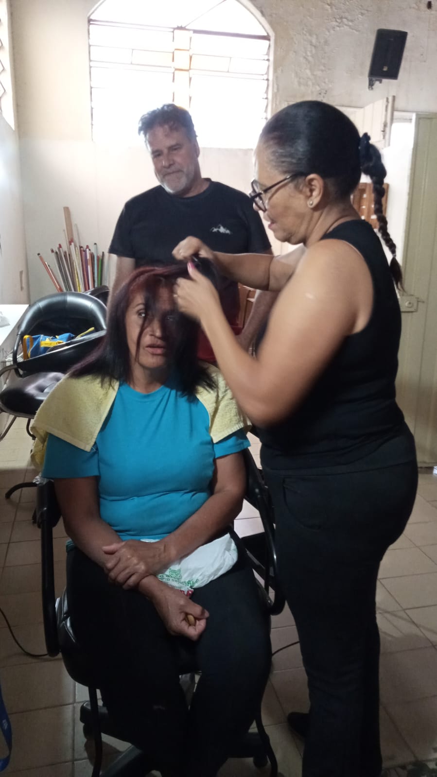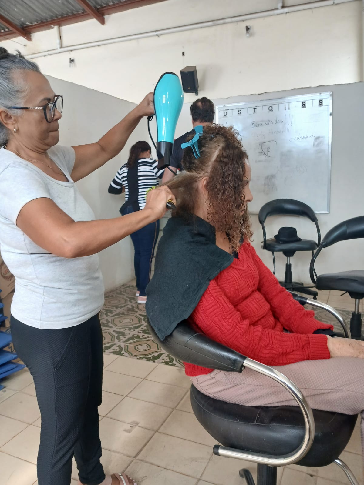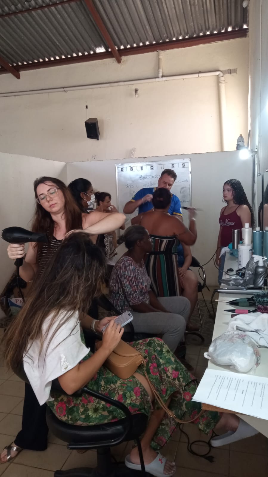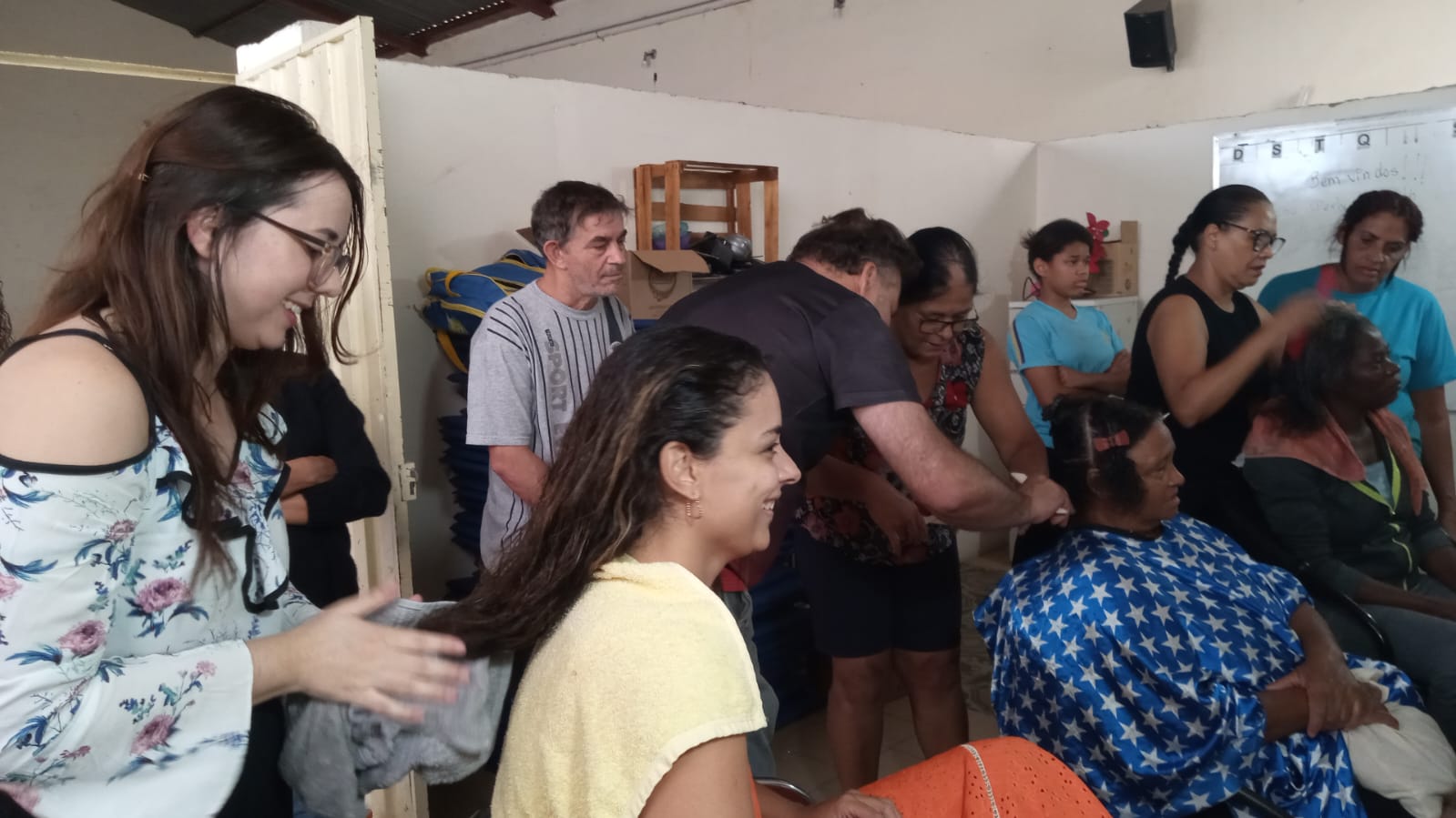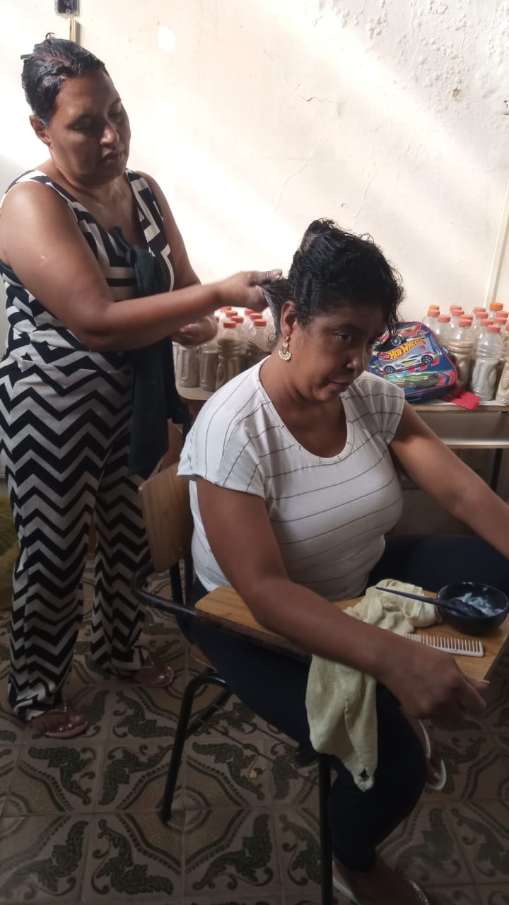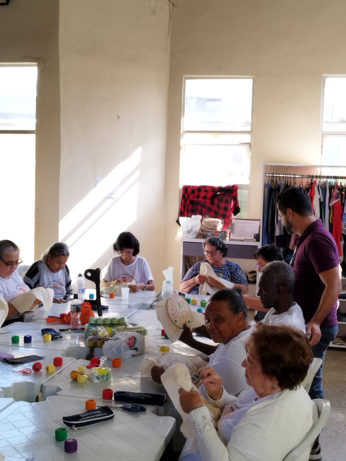 Alunos da oficina aprendendo artesanato de tapeçaria e bordado (parceria projeto FRED) 07/2025
