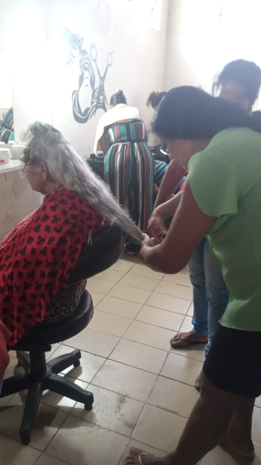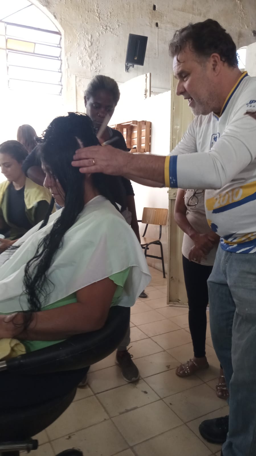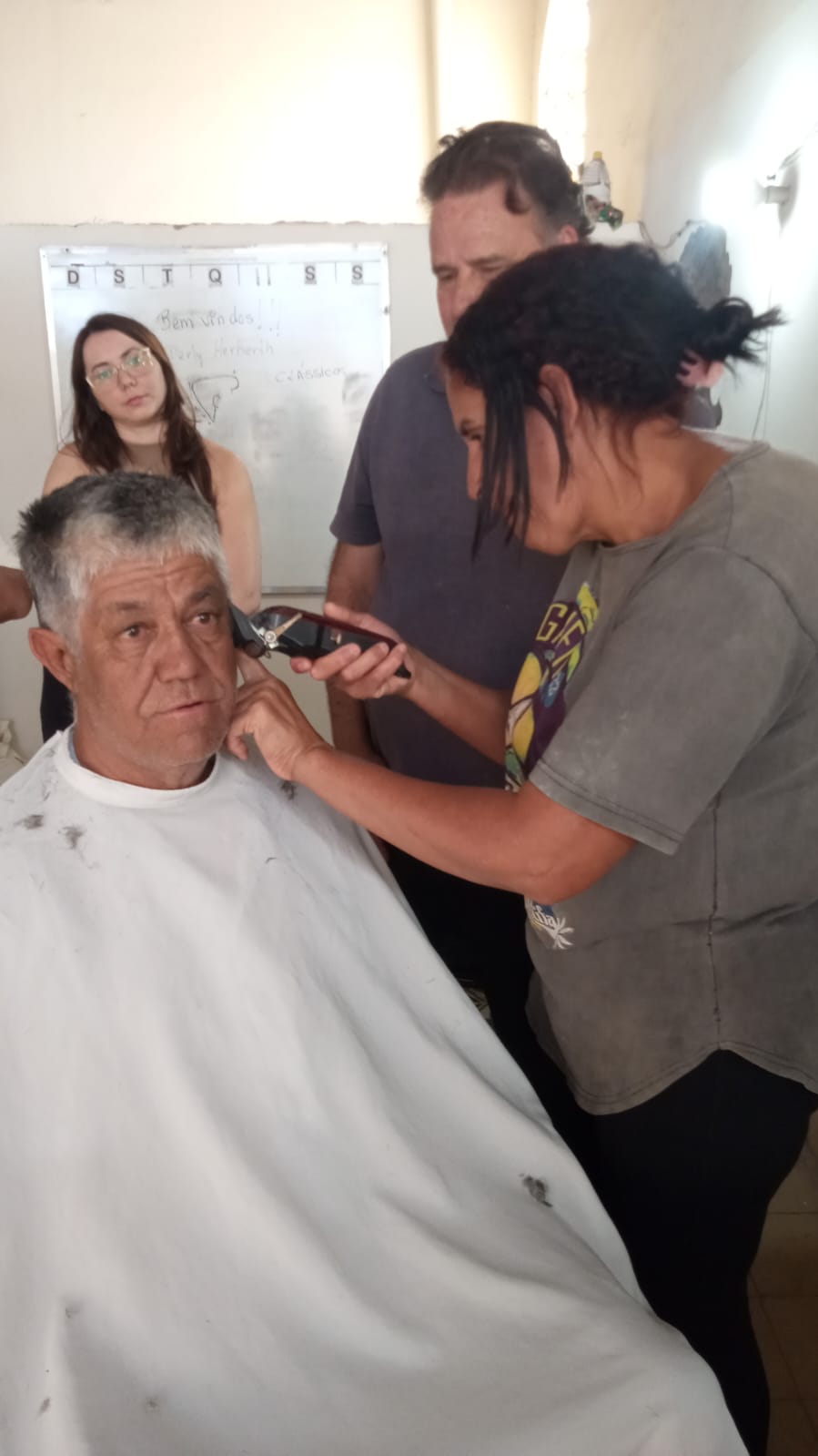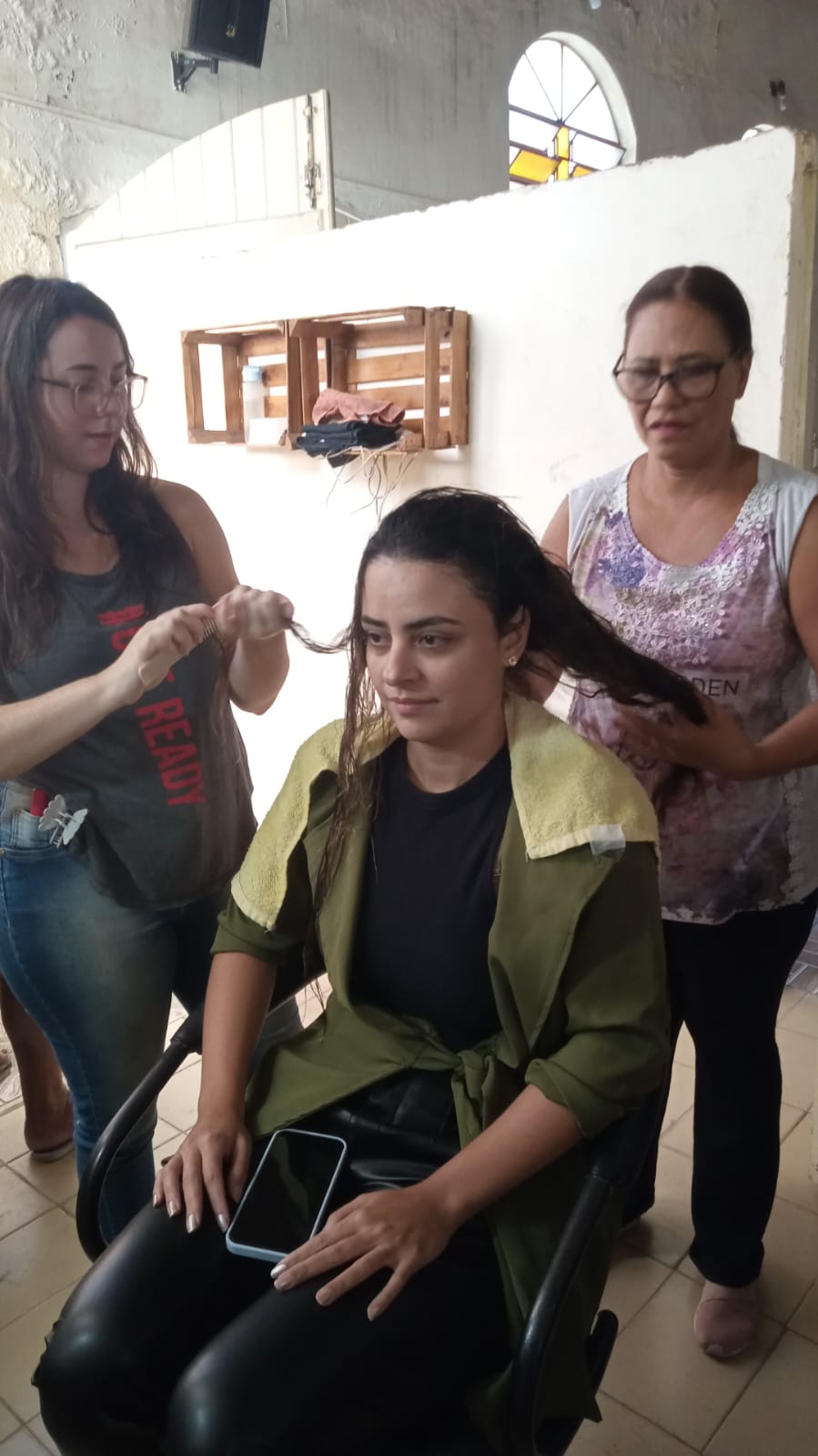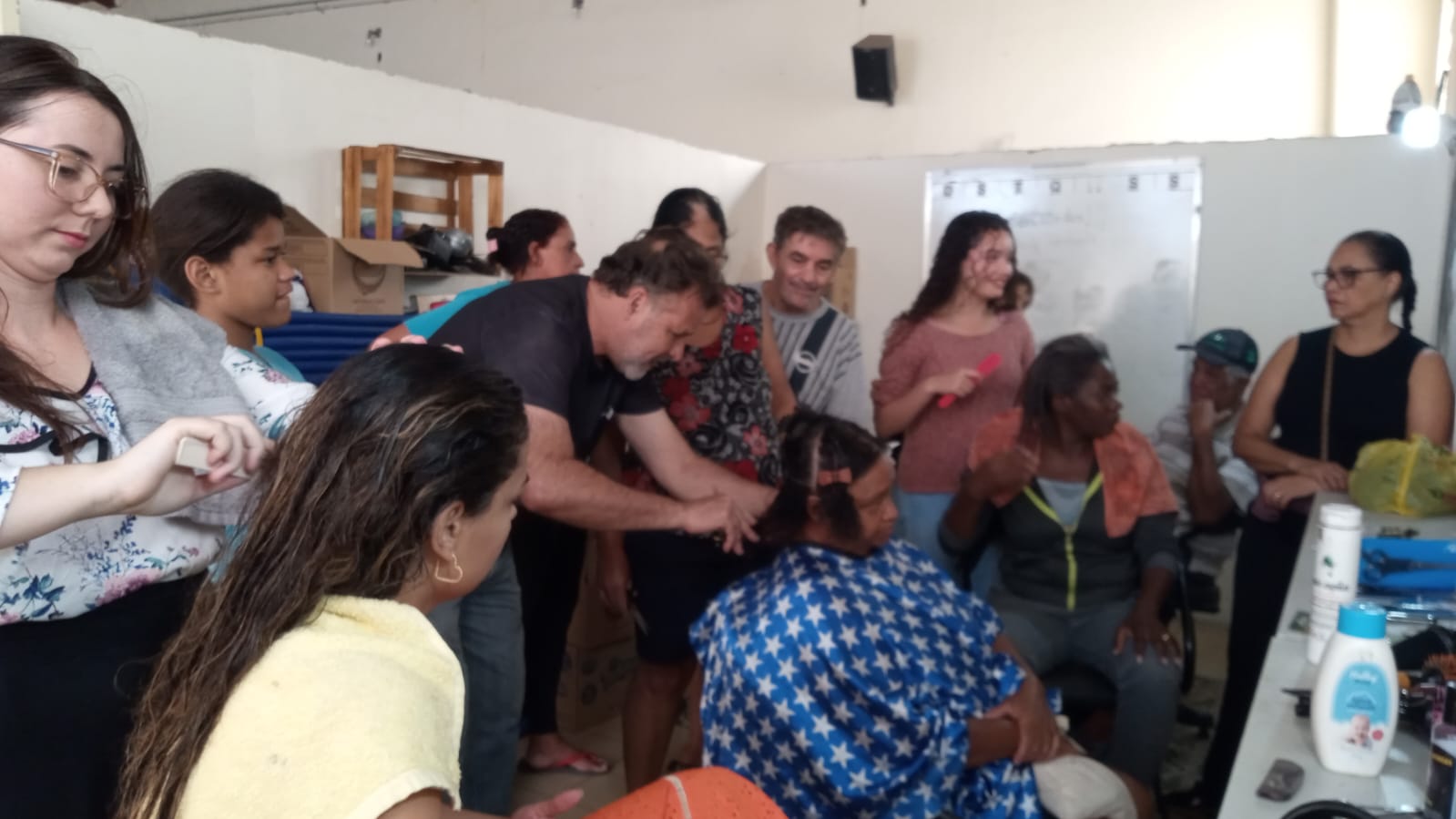 Alunos da oficina aprendendo artesanato de tapeçaria e bordado (parceria projeto FRED) 07/2025