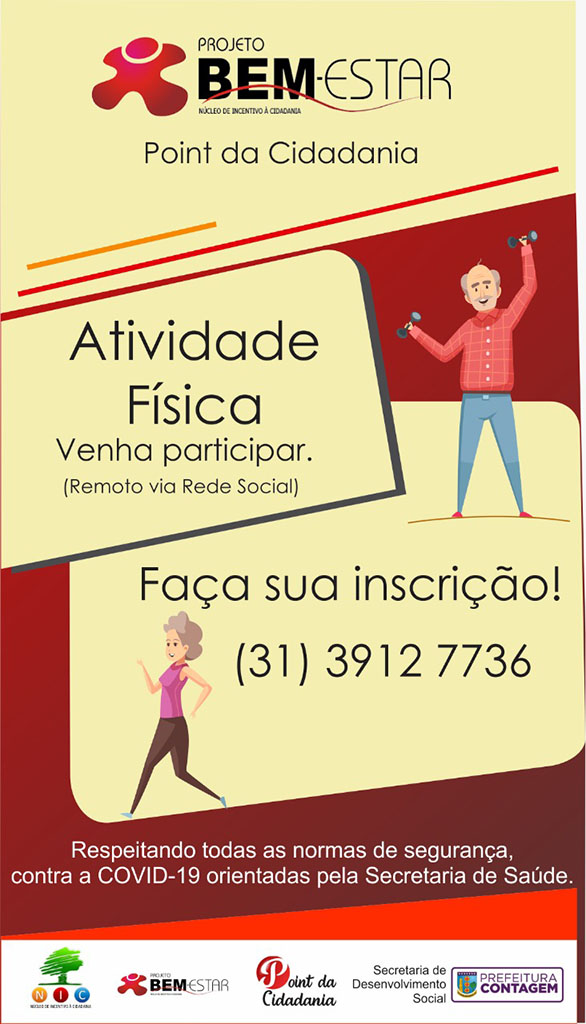 Venha Participar das nossas atividades Remotas e Presenciais do Projeto Bem Estar – Point da Cidadania.
